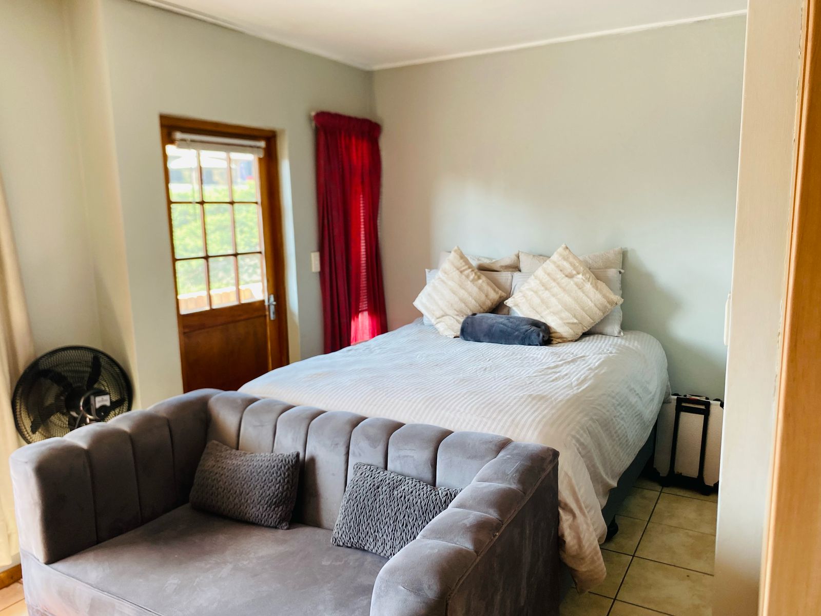 A spacious unit for a big bed, a study/work corner for a desk or entertainment area for TV. Space for a small sofa.
