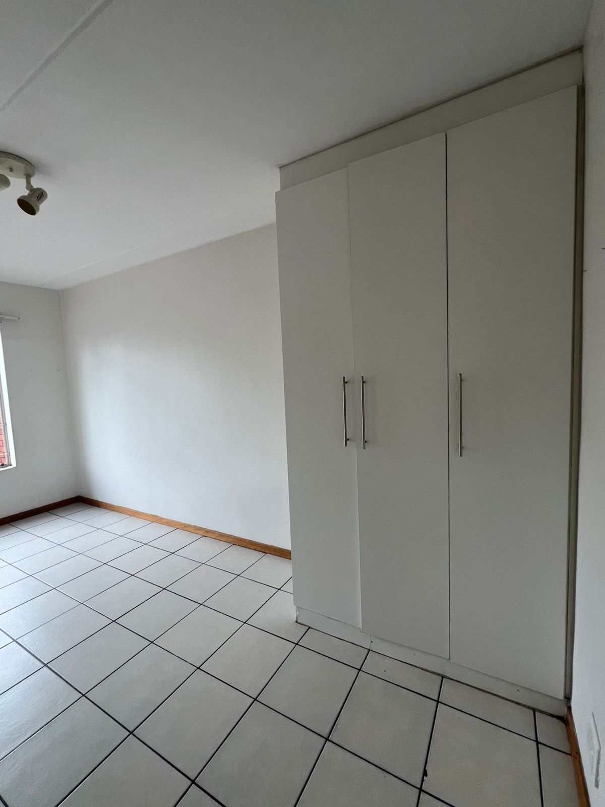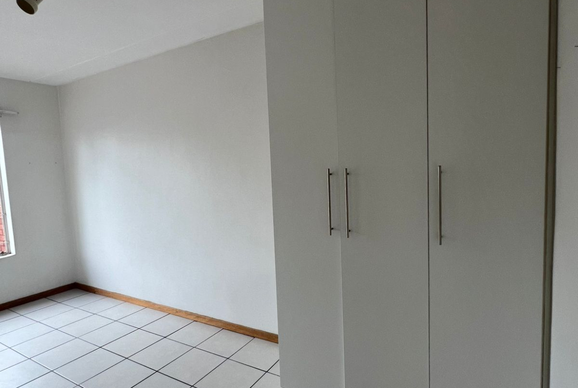 The apartment features two well-sized bedrooms, both fitted with built-in cupboards providing ample storage space.