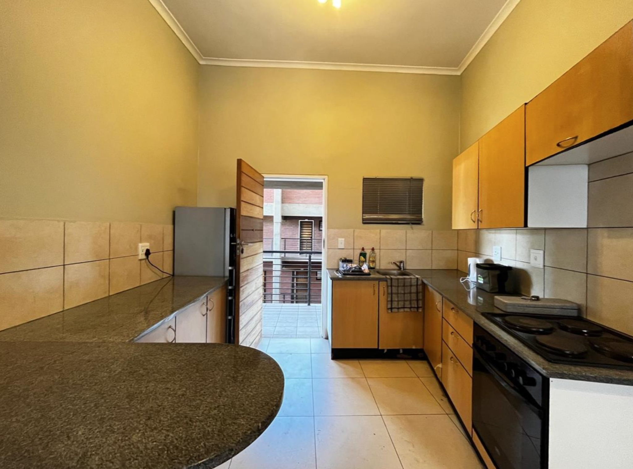 The kitchen is modern and functional, with fitted cupboards, a stove, and an extractor fan. It is the perfect space to cook up a storm and entertain guests. The bathroom boasts a shower and is tiled for easy maintenance and a clean look.